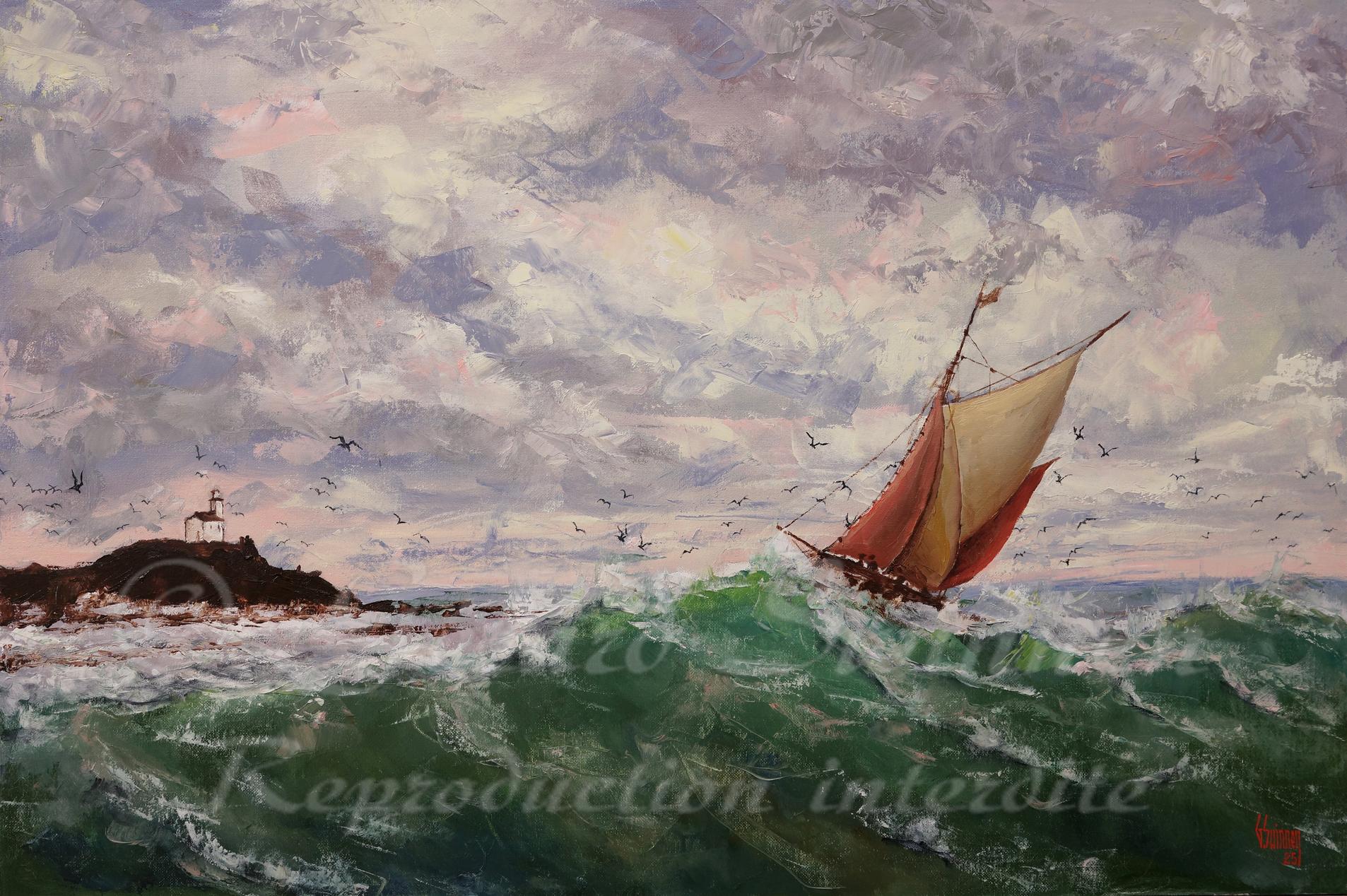 Au large de la bretagne - Huile sur panneau toilé - 40 x 60 cm - 2025