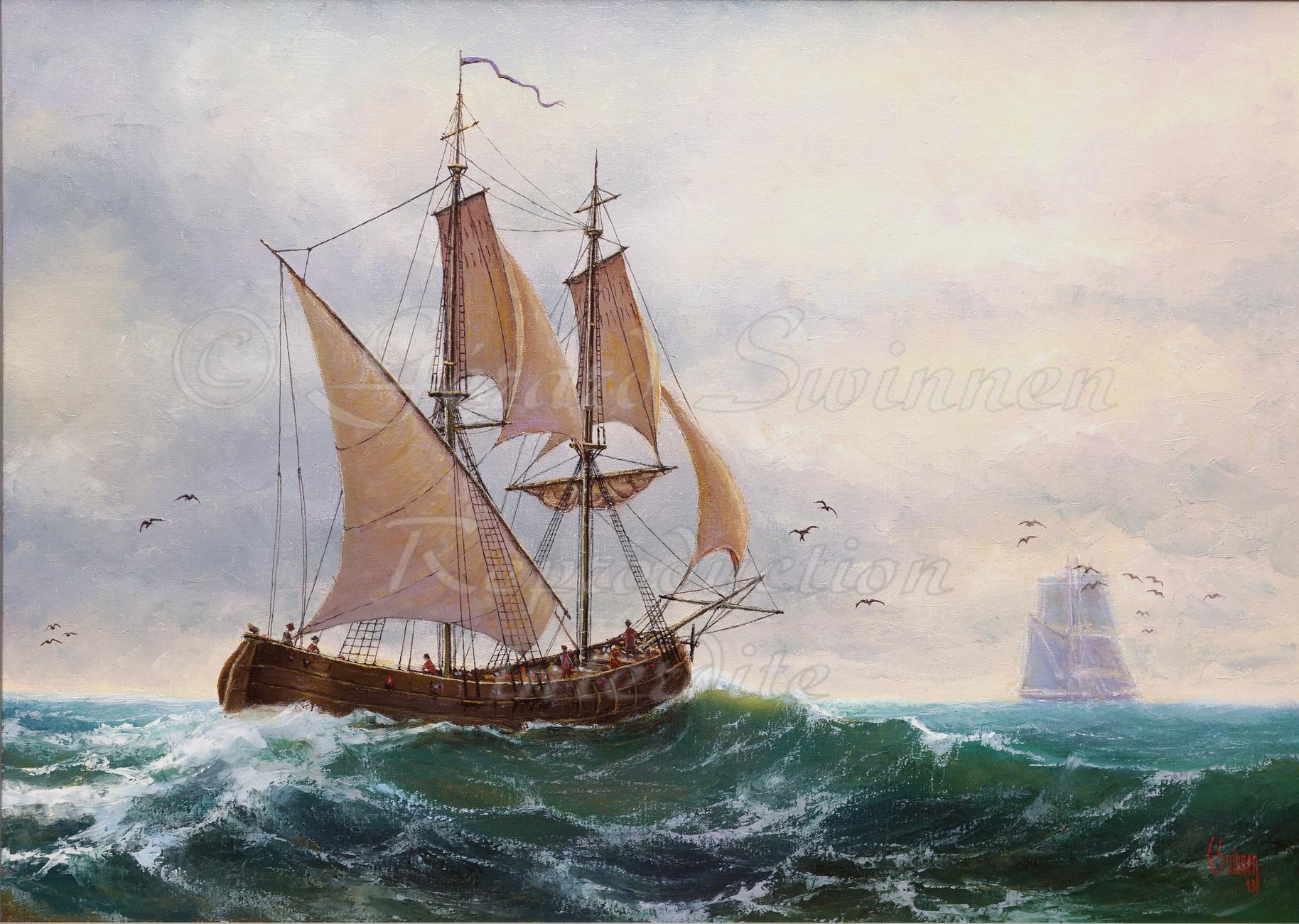 Bélandre en mer du Nord - 2013 - Huile sur toile - 50 x 70 cm.